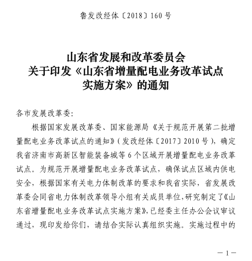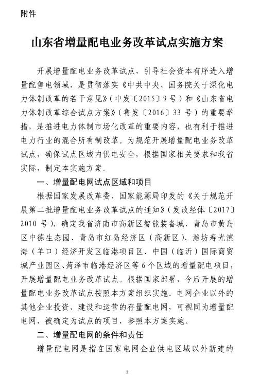 《山東省增量配電業(yè)務(wù)改革試點(diǎn)實(shí)施方案》印發(fā)