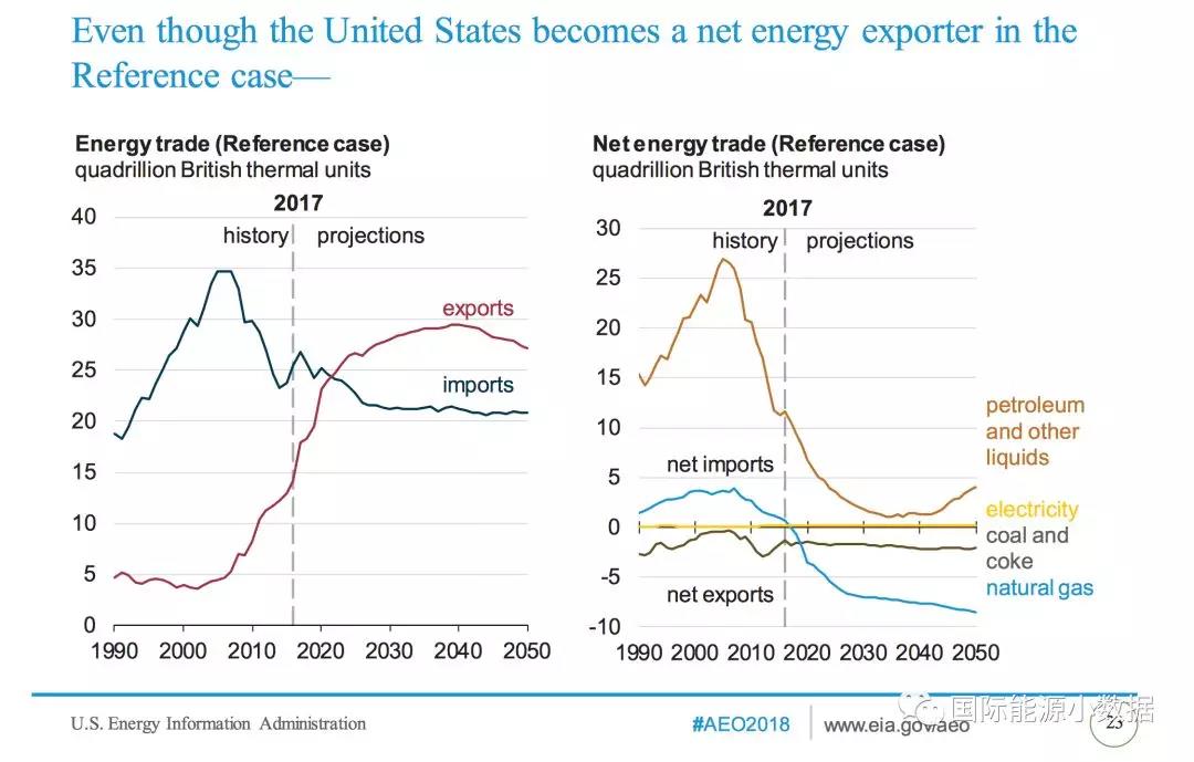 中國儲能網(wǎng)訊:美國能源信息署(EIA)剛剛發(fā)布了2018年版的能源展望報告(Annual Energy Outlook 2018),預(yù)測2050年美國能源生產(chǎn)和需求,也包括對于美國能源進出口的長期預(yù)測。