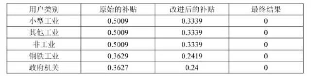 仍然采用上面的推算方法,2016年我國電價交叉補貼的社會福利凈損失每年有90.10億元-316.50億元,單位交叉補貼所造成的社會福利凈損失約為0.04-0.15,取其平均值,即每年每產(chǎn)生一單位交叉補貼其帶來的凈損失約為0.095,因此,交叉補貼產(chǎn)生凈損失巨大。值得注意的是:(1)福利凈損失的程度小于交叉補貼的程度,其主要原因與各類用戶的彈性有關(guān),由于彈性相對較低,價格的變化低于電量的變化;(2)補貼方因為交叉補貼所造成的福利變化遠遠小于被補貼方,這為解決交叉補貼提供了方向。