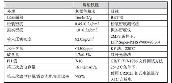 根據(jù)客戶評價報告顯示,公司生產(chǎn)的磷酸鐵鋰材料主要技術指標為模擬電池比容量達160mAh/g,;正極極片可用壓實密度達2.52g/cm3;0.2C-0.5C不同倍率充放電容量比率均可達到99.4%以上,具體性能指標情況如下: