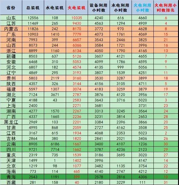 綜合各省火電裝機排名以及火電利用小時排名情況,作出以下判斷: