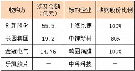 繼2016年,勝利精密收購蘇州捷力、雙杰電氣控股東皋膜后,2017年資本對隔膜領(lǐng)域的攻勢更加瘋狂。一方面,國內(nèi)市場大型收購案例增多,且涉及金額巨大(均超10億元),收購動作更加迅速(主要收購案都集中在上半年),私下積極接觸意向隔膜標(biāo)的的企業(yè)無計。