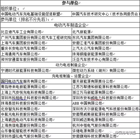 此次調(diào)研由中國電動汽車充電基礎(chǔ)設(shè)施促進(jìn)聯(lián)盟與中國汽車技術(shù)研究中心(技術(shù)協(xié)同委員會)共同組織,國內(nèi)主流整車制造企業(yè)、充電設(shè)施制造企業(yè)、動力電池制造企業(yè)、充電接口制造企業(yè)、充電設(shè)施運營企業(yè)等派代表參加了此次調(diào)研活動,參與調(diào)研單位詳細(xì)信息見“表1 參與調(diào)研單位信息表”。