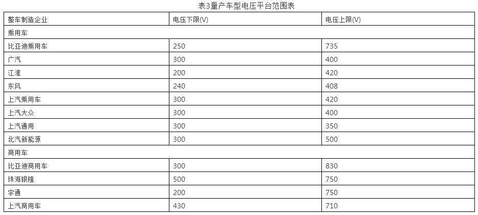 圖1量產(chǎn)車型電壓平臺范圍圖