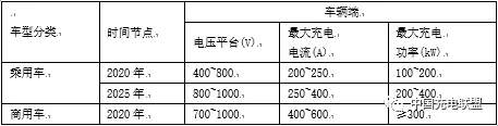 充電設(shè)施服務(wù)對象為電動汽車,為滿足我國未來快速充電車型的充電需求,兼顧社會其他電動汽車的充電需求,快速充電設(shè)施在2018年開始布局或更新?lián)Q代的產(chǎn)品電壓應(yīng)覆蓋200~800V(或200~750V)??焖俪潆娫O(shè)施在2025年之前輸出電壓應(yīng)覆蓋200~1000V。