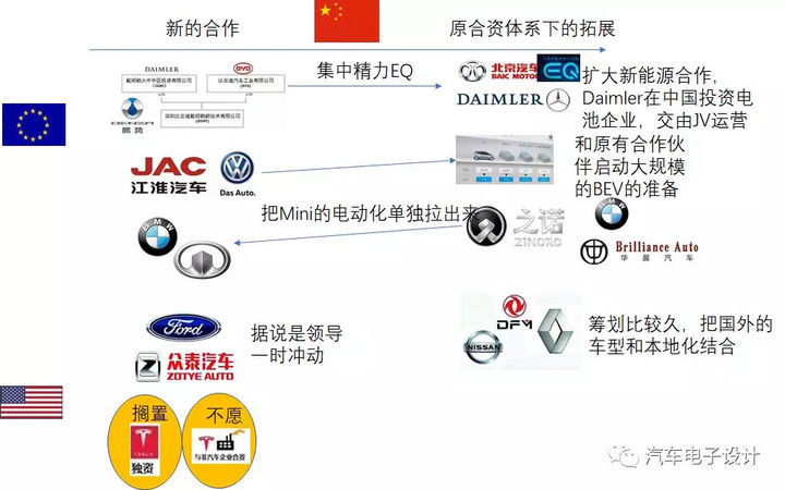 如下圖所示,在中國要繞過國內(nèi)企業(yè)建立獨資的公司還是很困難的事情,“特斯拉與中國政府在電車組裝工廠所有權結構上存在分歧、特斯拉國內(nèi)獨資建廠一事或陷入僵局”……類似特斯拉的事情就是擰著不容易辦,條件很不容易談妥。所以從大的原則來看,所有車企都需要考慮新的辦法,還要考慮與原有的合作伙伴的關系,還是挺困難的。