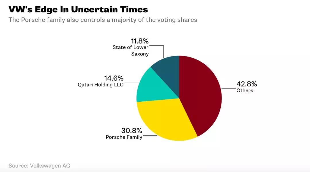 亂世之中大眾的王牌:保時捷家族控制著大眾汽車大多數(shù)有投票權(quán)的股份。來源:大眾汽車