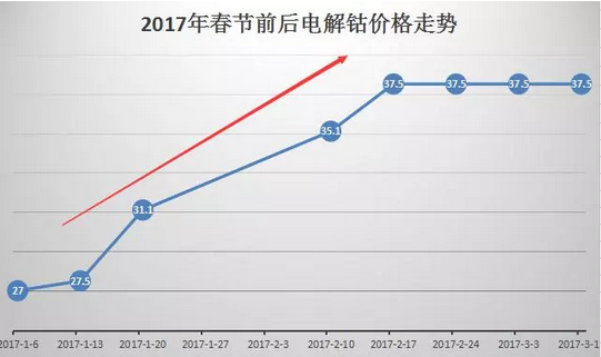 首先,去年的漲價前提是,鈷價的吹漲行情已經(jīng)在2016年推了一整年,而整個2016年鈷價都處于歷史低位,一直到2016年底才開始步入緩步的上漲通道,在2017年春節(jié)后,伴隨著高能量密度的政策扶持,積壓已久的鈷價迎來報復(fù)式的上漲,在極短的時間內(nèi)漲到了較高的價位。