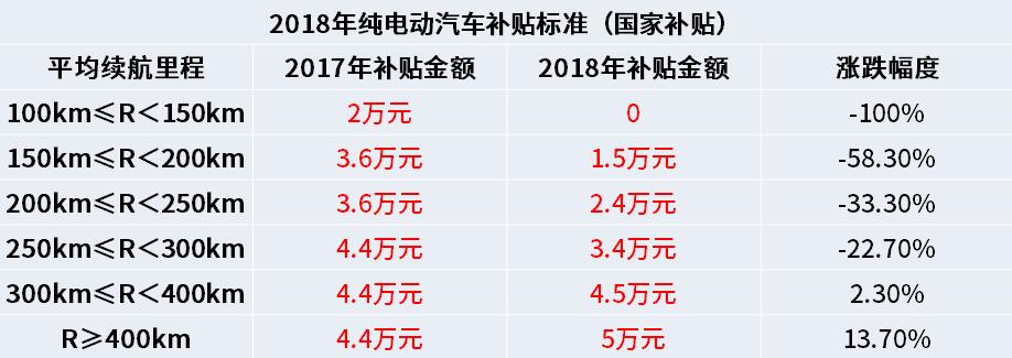 首先,我們看到,相比于2017年的補貼金額,補貼新政對于300km平均工況續(xù)航的產(chǎn)品補貼進行了提高,而對于400km平均工況續(xù)航的車,則直接將補貼金額提升到5萬元。