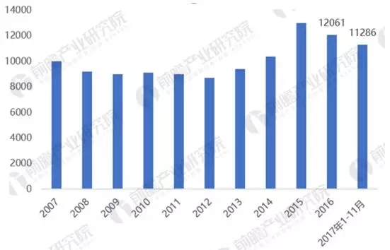 圖表1:2007-2017年全國(guó)發(fā)電新增設(shè)備容量情況(單位:萬(wàn)千瓦)