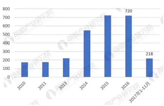圖表5:2010-2017年新增核電裝機(jī)容量變化(單位:萬(wàn)千瓦)
