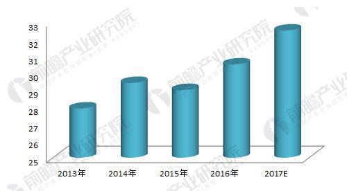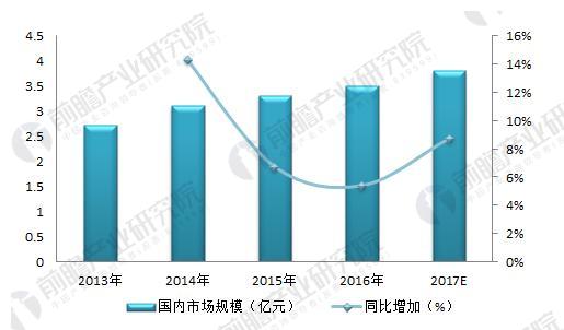 圖表3:2013-2016年全球鐵路機(jī)車(chē)用蓄電池行業(yè)市場(chǎng)規(guī)模變化趨勢(shì)(單位:億元)