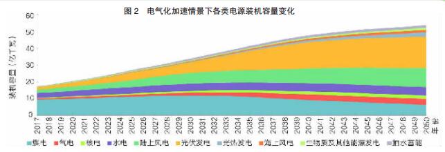 2050年之前電源裝機(jī)將保持快速、持續(xù)增長,常規(guī)轉(zhuǎn)型情景與電氣化加速情景下,2030年裝機(jī)容量分別達(dá)到28.7億千瓦、36.3億千瓦,2050年裝機(jī)容量分別達(dá)到44.3億千瓦、57.5億千瓦。增量部分以清潔能源為主,電源結(jié)構(gòu)逐步優(yōu)化。兩情景下,2030年清潔電源裝機(jī)容量分別達(dá)到15.4億千瓦、21.7億千瓦,2050年分別達(dá)到35.1億千瓦、46.9億千瓦。