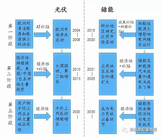 技術(shù)進(jìn)步背景下的規(guī)模發(fā)展,是新能源成本下降的核心邏輯。以光伏為例,2008年至今,光伏度電成本下降80%以上(當(dāng)前下降的趨勢(shì)仍在持續(xù)),而儲(chǔ)能同樣適用。盡管在成本約束下,當(dāng)前我國(guó)的鋰電儲(chǔ)能市場(chǎng)處在從示范項(xiàng)目向商業(yè)化初期過渡階段。隨著《儲(chǔ)能技術(shù)與產(chǎn)業(yè)發(fā)展指導(dǎo)意見》的落地,儲(chǔ)能發(fā)展路徑與應(yīng)用前景得以明確,在我國(guó)電力體制改革深入實(shí)施背景下,儲(chǔ)能的準(zhǔn)入機(jī)制、結(jié)算模式的將進(jìn)一步得到規(guī)范(例如調(diào)頻市場(chǎng)定價(jià)機(jī)制)。隨著儲(chǔ)能技術(shù)進(jìn)步與成本下降,“儲(chǔ)能+”應(yīng)用領(lǐng)域打開,儲(chǔ)能商業(yè)化有望提前進(jìn)入爆發(fā)期。