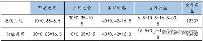 目前用戶的光伏系統(tǒng)的自發(fā)自用部分都相對(duì)較低,有的還不到30%,而光伏+儲(chǔ)能的結(jié)合會(huì)大大提高自發(fā)自用比率,從而提高用戶的收益。對(duì)比光伏系統(tǒng)與光伏+儲(chǔ)能系統(tǒng)的收益情況,以常見的10KW戶用系統(tǒng)為例,平均每天發(fā)電40度,假設(shè)用戶白天自用電為10度,其余30度買給電網(wǎng),(自用率10/40=25%)加裝儲(chǔ)能設(shè)備后,10度自用,20度電存入蓄電池晚上使用(自用率10+20/40=75%),以廣東地區(qū)電價(jià)為例,自用電價(jià)0.65元,上網(wǎng)電價(jià)0.35元。