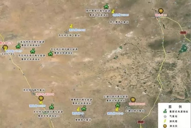 集群式電源場(chǎng)址與氣象站、測(cè)風(fēng)塔以及測(cè)光儀位置關(guān)系
