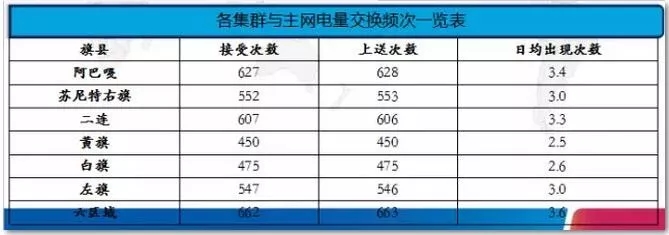 據(jù)建模仿真分析數(shù)據(jù)結(jié)果,各集群與主網(wǎng)電量交換頻次均能控制在630次以下,六區(qū)域聯(lián)網(wǎng)運(yùn)行后的交換頻次控制在663次。日均出現(xiàn)交換次數(shù)為3.6次以下。每個(gè)頻次的交換中均持續(xù)在20分鐘以上。集群與主網(wǎng)交換頻次較為合理,詳見下表。