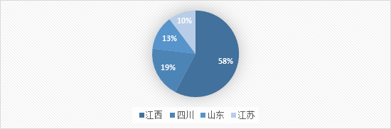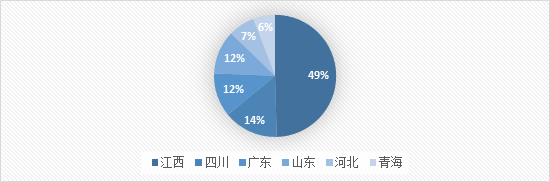 其中,設(shè)計原料種類為鋰礦石的產(chǎn)能占94%,鹵水的為6%。 氫氧化鋰方面,共有6家企業(yè)在2018年規(guī)劃新增產(chǎn)能合計7.8萬噸,分地區(qū)份額如下圖所示。