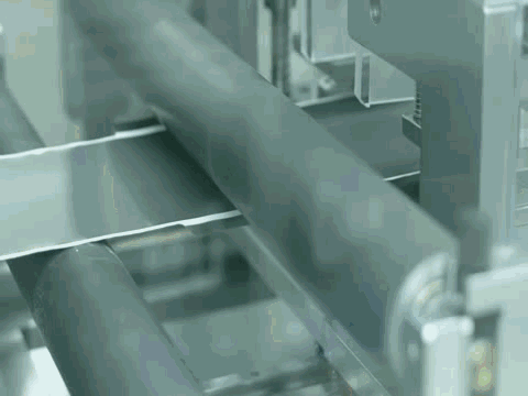 然后,通過(guò)切刀對(duì)極片進(jìn)行分切。