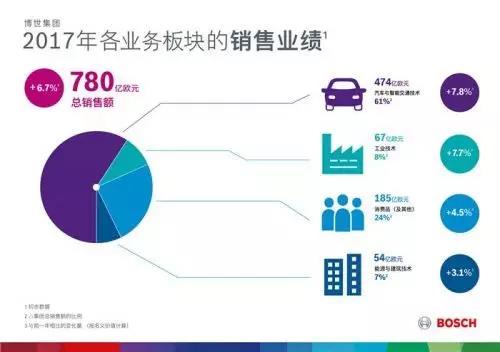 最新的財報數(shù)據(jù)顯示,博世集團2017年銷售額達780億歐元,息稅前利潤達到53億歐元。