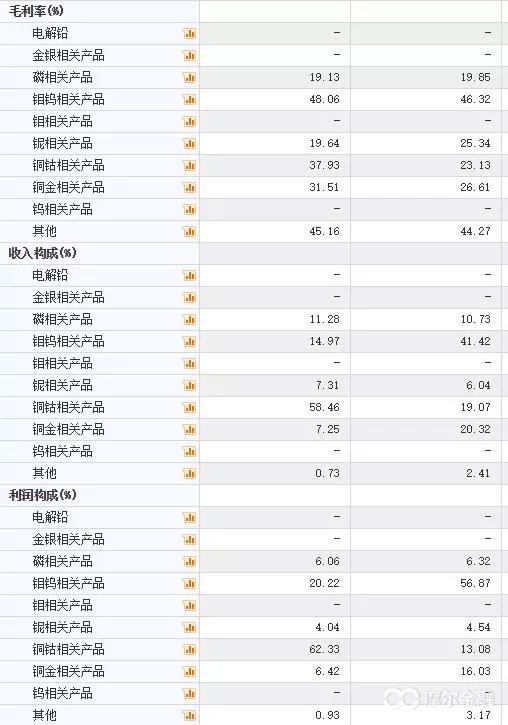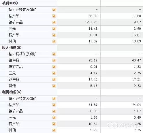 圖為17年中報與16年年報對比,兩家公司在2017年銅鈷產品收入占比顯著提高,毛利率顯著提高。