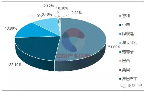 2016年全球鋰礦儲量約1400萬噸,主要集中在智利、中國、阿根廷和澳大利亞,其中智利儲量占比過半。