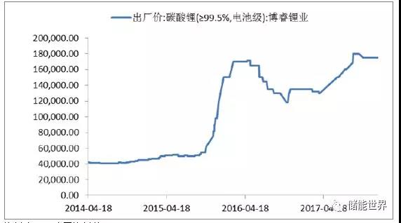 2017-2018年碳酸鋰供需仍未緊平衡狀態(tài),到2019年能夠基本實現(xiàn)供需平衡,且考慮到碳酸鋰擴產(chǎn)不及預期的概率較其他產(chǎn)業(yè)更高,碳酸鋰景氣周期大概率持續(xù),價格有望持續(xù)較高位運行。