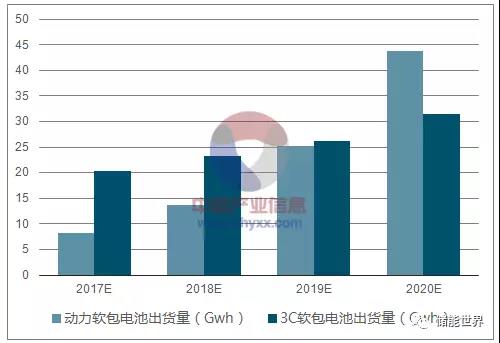 2017-2020年國內(nèi)動力軟包電池、3C軟包電池出貨量測算
