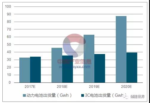 2017-2020年國內(nèi)動力電池、3C電池出貨量測算