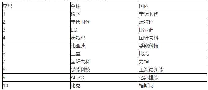 2017年前三季度全球及國內(nèi)動力電池出貨量排名