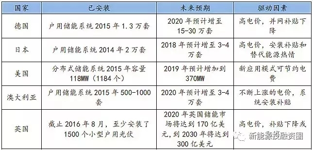 當(dāng)前,伴隨著儲能的成本逐步下降,國外已經(jīng)實(shí)現(xiàn)光儲在用戶側(cè)的平價上網(wǎng),以德國為例,在戶用儲能方面,2016年德國新增了2萬套戶用儲能電池系統(tǒng),到2017年其戶用儲能系統(tǒng)安裝量為52000套,預(yù)計(jì)短期內(nèi),在大幅降低的儲能系統(tǒng)成本、逐年下降的分布式光伏上網(wǎng)電價、高額零售電價、高比例可再生能源發(fā)電、德國復(fù)興銀行戶用儲能補(bǔ)貼等因素推動下,戶用儲能市場容量將持續(xù)攀升。隨著我國戶用光伏市場的爆發(fā)及電價改革的推進(jìn),國內(nèi)戶用儲能將緊隨其后。