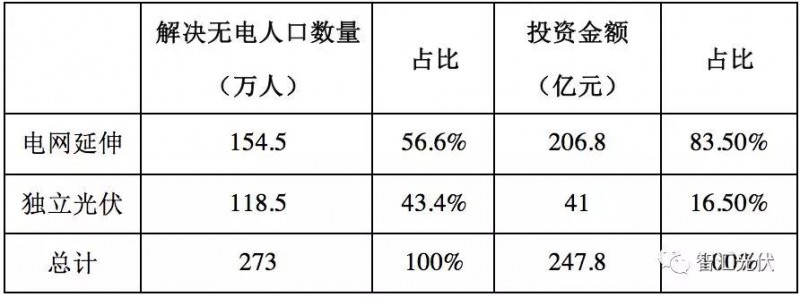國家能源局?jǐn)?shù)據(jù)顯示,2013-2015 年,國家共安排投資247.8 億元(中央資金145.5 億元) 用于實(shí)施無電地區(qū)電網(wǎng)延伸和可再生能源供電工程建設(shè)。其中,安排電網(wǎng)投資計(jì)劃206.8 億元,為154.5 萬無電人口通電;安排光伏獨(dú)立供電工程建設(shè)投資計(jì)劃41 億元(中央資金28.5 億元),共建成光伏獨(dú)立電站670 余座、光伏戶用系統(tǒng)35 萬余套,為118.5 萬無電人口通電。相比于電網(wǎng)延伸,獨(dú)立光伏用總投資16.5% 的資金解決了43.4% 的無電人口用電問題。從人均投資來看,每3460 元用于獨(dú)立光伏的投資即可解決一人的用電;相比之下,投資電網(wǎng)卻需要13385 元,是獨(dú)立光伏的3.87 倍。