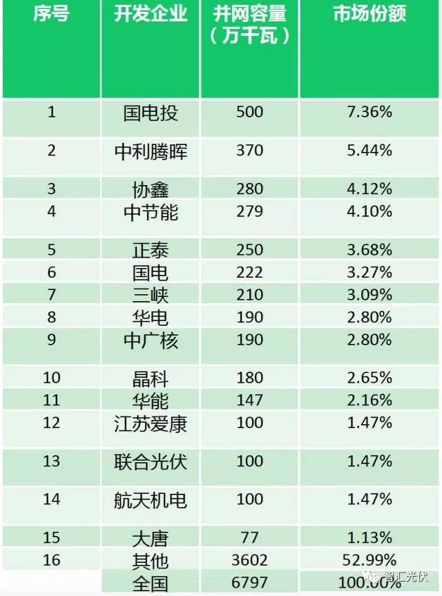 注:2016年光伏開發(fā)企業(yè)的排名用的是水利總院一些數(shù)據(jù),跟各家已經(jīng)上市的光伏資產(chǎn)持有公司的公報有一定的出入