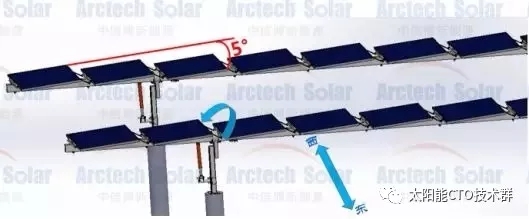 三、單面/雙面組件+5°傾角平單軸(顧名思義組件和旋轉(zhuǎn)主梁夾角為5°)。