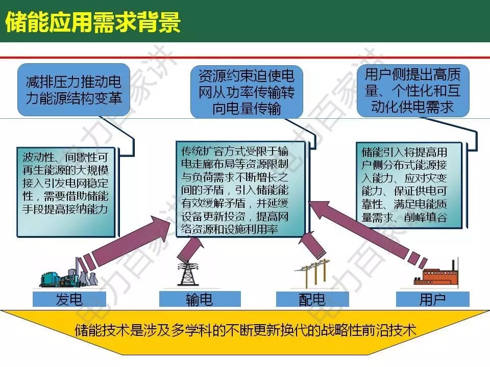 近期中國(guó)電力科學(xué)院惠東教授發(fā)表了題為《電力儲(chǔ)能發(fā)展趨勢(shì)預(yù)判》的報(bào)告。他在報(bào)告中大膽預(yù)判中國(guó)將成為未來(lái)儲(chǔ)能需求規(guī)模最大的國(guó)家。增長(zhǎng)的動(dòng)力一方面將來(lái)自于平衡可再生能源發(fā)電的需求;一方面將來(lái)自于電力負(fù)荷的增長(zhǎng),惠東預(yù)計(jì)匹配發(fā)達(dá)國(guó)家的用電水平,我國(guó)人均用電量要大約翻一倍,達(dá)到人均8000~9000度左右(目前是人均4000度多),這個(gè)過(guò)程中,如果按照傳統(tǒng)的擴(kuò)容思路,電網(wǎng)要照現(xiàn)在的2.5倍的規(guī)模來(lái)建設(shè)。而引入儲(chǔ)能將有效延緩設(shè)備更新投資,提高網(wǎng)絡(luò)資源和設(shè)施利用率。