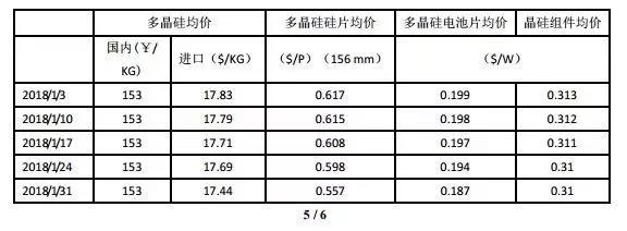 根據(jù)海關(guān)最新數(shù)據(jù)統(tǒng)計(jì),2018年1月份多晶硅進(jìn)口量為16262噸,環(huán)比增加29.7%。1月份進(jìn)口均價(jià)為18.11美元/千克,環(huán)比增加2.9%。值得注意的有以下四點(diǎn):