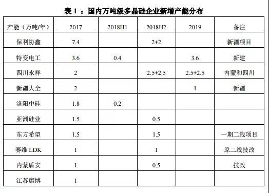 下半年新增產(chǎn)能包括:保利協(xié)鑫4萬(wàn)噸/年,四川永祥(樂(lè)山+包頭)5萬(wàn)噸/年,內(nèi)蒙盾安、亞洲硅業(yè)、四川瑞能、賽維LDK、云芯硅材等。
