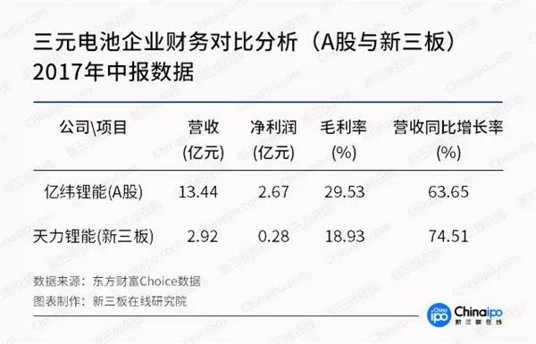 終端電池方面,A股上市公司億緯鋰能的表現(xiàn)明顯好于新三板企業(yè)天力鋰能。不過加入企業(yè)成長性與估值因素后,天力鋰能仍可關(guān)注。(新三板在線研究院/陳睿)