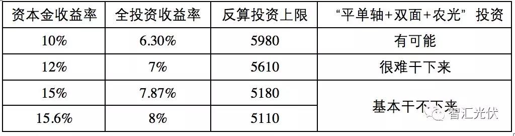 可見,在極低的資金成本下,如果業(yè)主認(rèn)為全投資6.3%的收益率,資本金10%的收益率就能接受,以白城的建設(shè)條件,5.98元/W的造價(jià),似乎還能干。