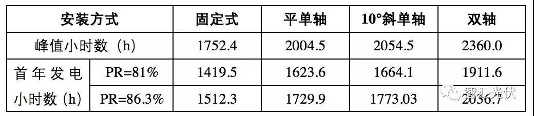 表2:白城不同安裝方式的首年發(fā)電小時(shí)數(shù)計(jì)算