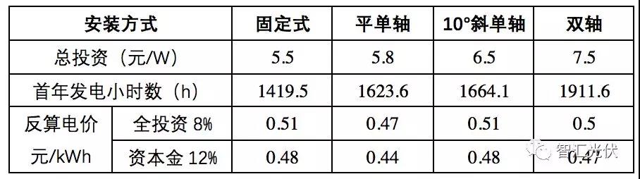 表1:不同安裝方式時(shí)的反算電價(jià)