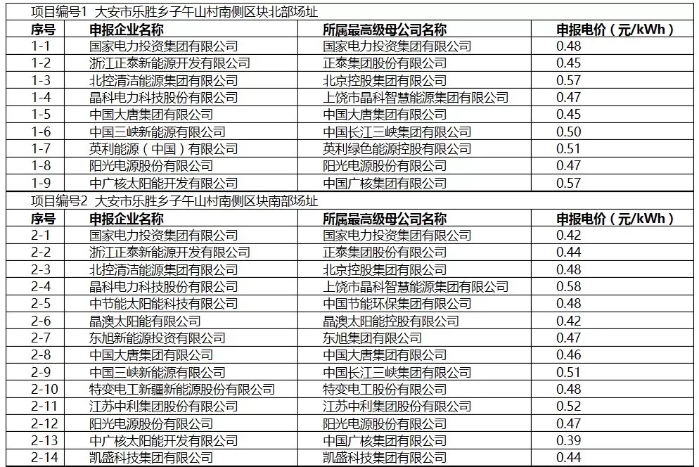 次低電價(jià)為0.41元/千瓦時(shí),投出該電價(jià)的企業(yè)為中廣核、浙江正泰!