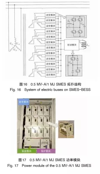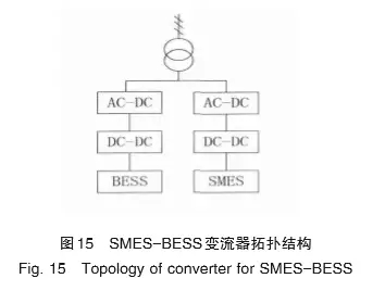 風力發(fā)電存在不連續(xù)、不穩(wěn)定的特點,直接并網(wǎng)會造成電壓閃變、功率頻率波動等不良影響。同時,風電場必須具備低電壓穿越(lowvoltageridethrough,LVRT)能力,以消除潛在的安全隱患。研究表明,SMES-BESS在穩(wěn)定電壓波動、平抑風電功率波動及提高低電壓穿越能力方面具有重要作用。圖15為SMES-BESS變流器的拓撲結構。