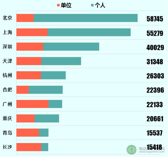 保監(jiān)會(huì)交強(qiáng)險(xiǎn)汽車銷量數(shù)據(jù)顯示, 2017年新能源汽車銷量最高的城市是北京,累計(jì)銷量達(dá)到了5.9萬臺(tái),其中純電動(dòng)車占比高達(dá)98.6%。