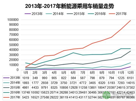 2017年,乘聯(lián)會(huì)數(shù)據(jù)顯示,新能源乘用車共銷售56萬臺(tái),其中純電動(dòng)乘用車?yán)塾?jì)銷售45萬臺(tái),插電式混合動(dòng)力乘用車?yán)塾?jì)銷售11萬臺(tái)。