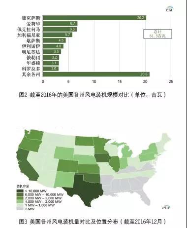 美國能源信息署(EIA)的數(shù)據(jù)顯示,截至2016年年底,美國風(fēng)電裝機規(guī)模超過8100萬千瓦。