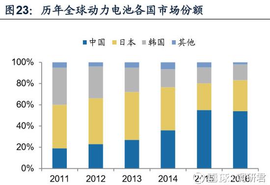 日本是動力電池行業(yè)發(fā)展的先驅(qū),早在1995年豐田公司的鎳氫鋰電池便已應(yīng)用于普銳斯混動動力汽車,隨后形成了近10年日本對于鋰電池行業(yè)主導(dǎo),市場占比曾一度達(dá)全球的80%;隨后, 韓國三星SDI、LG化學(xué)分別于2008年、2009年進(jìn)入動力電池市場,與本國汽車廠商現(xiàn)代、起亞展開深度合作,挑戰(zhàn)日本鋰電池行業(yè)主導(dǎo)地位,2011年韓國在動力電 池領(lǐng)域全球份額已達(dá)到35%,與日本僅有6個百分點的差距;2014年起中國新能源汽車產(chǎn)業(yè)爆發(fā),帶動中國本土動力電池產(chǎn)量成倍增長,2015年中國便成為了動力電池世界第一生產(chǎn)國,全球市場份額約55%。