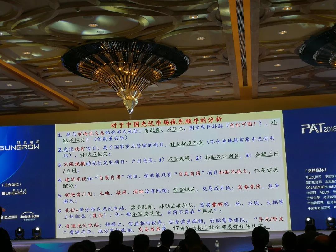 中國儲能網(wǎng)訊:3月13日,由陽光電源主辦的“PAT2018愛光伏一生一世”質(zhì)勝分布創(chuàng)新領(lǐng)跑光伏先進技術(shù)研討會于3月13日在合肥皇冠假日酒店如期開幕。國家發(fā)改委能源研究所原研究員王斯成受邀參會,并就2018年分布式有哪些熱點與在座嘉賓作了詳細的探討。