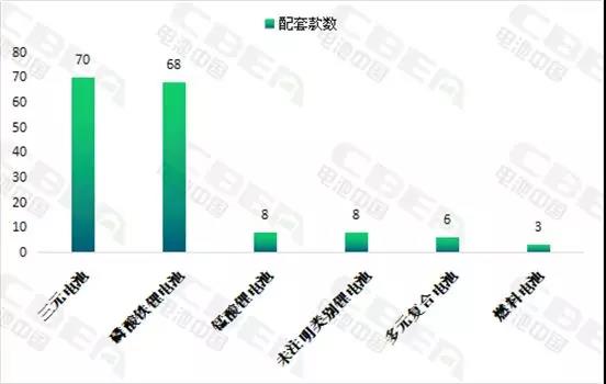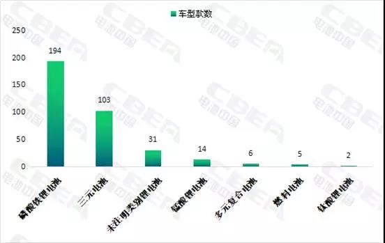 從配套電池類別來看,本批公示目錄以磷酸鐵鋰電池和三元電池為主,分別配套194款車型和103款車型,分別占本批公示目錄總車型的54.65%和29.02%,磷酸鐵鋰電池主要應(yīng)用于新能源客車方面,而三元電池主要應(yīng)用于新能源乘用車和新能源專用車方面;未注明類別鋰電池配套31款車型,占比為8.73%;錳酸鋰電池配套14款車型,占比為3.94%;多元復(fù)合電池配套6款車型,占比為1.69%,全部應(yīng)用于新能源專用車方面;燃料電池配套5款車型,占比為1.41%;鈦酸鋰電池配套2款車型,占比為0.56%,全部應(yīng)用于新能源客車方面。