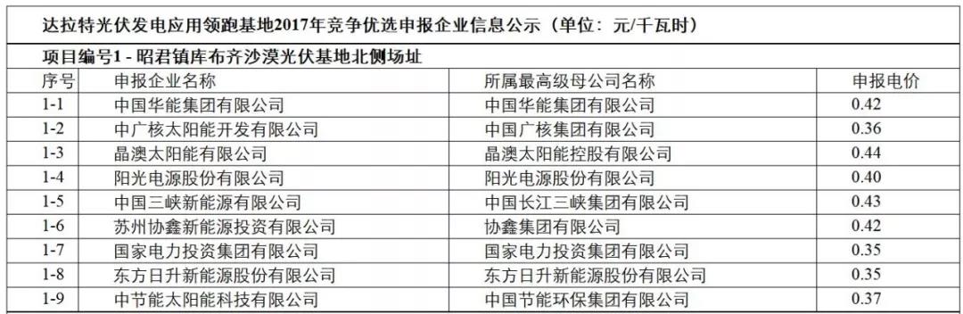2018年3月15日,第三批領(lǐng)跑者基地之一的——達(dá)拉特旗公布第一批500MW投保情況。其中,特變電工最低0.32元/度、正泰最高0.47元/度。